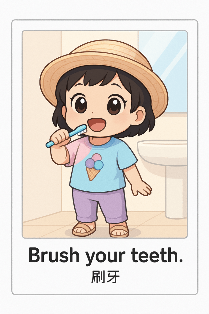 2️⃣ 公仔放進日常場景:刷牙、睡覺、收玩具