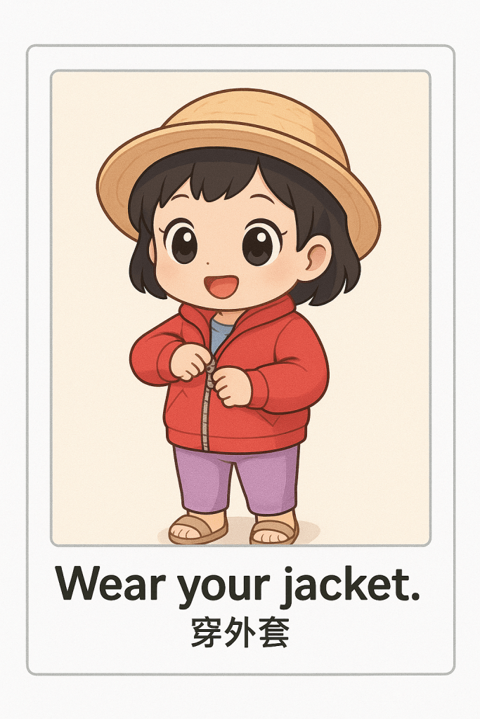 English phrase: “Wear your jacket."