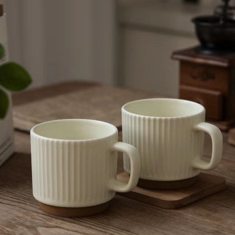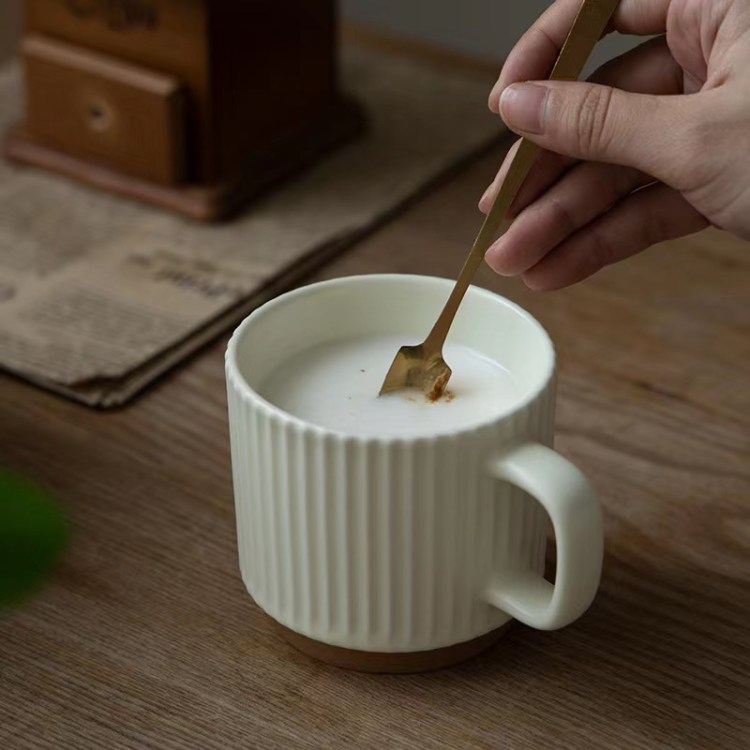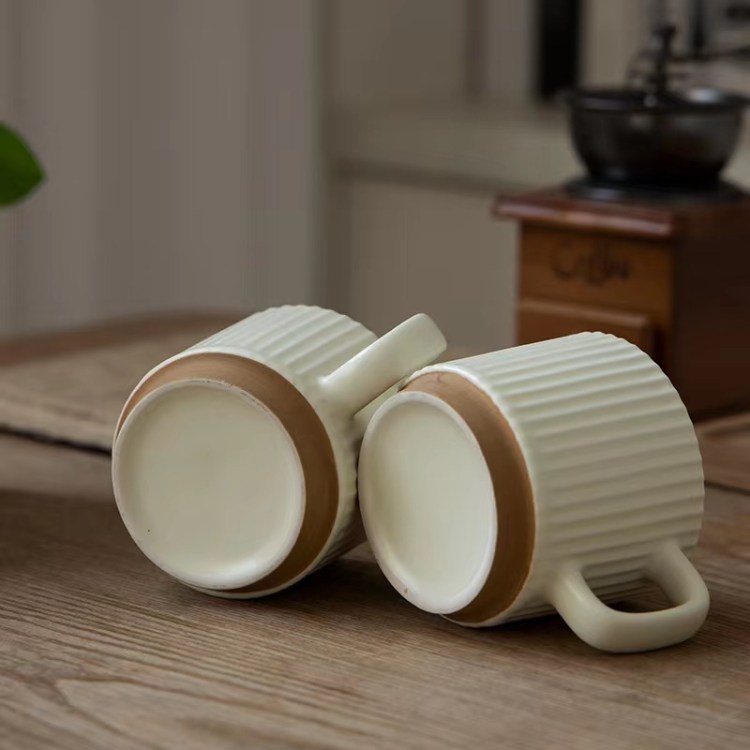 咖啡牛奶豎紋陶瓷杯