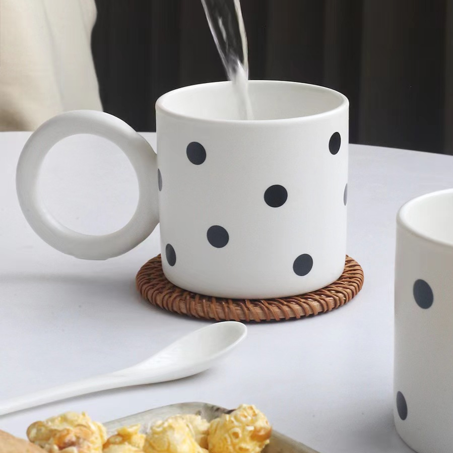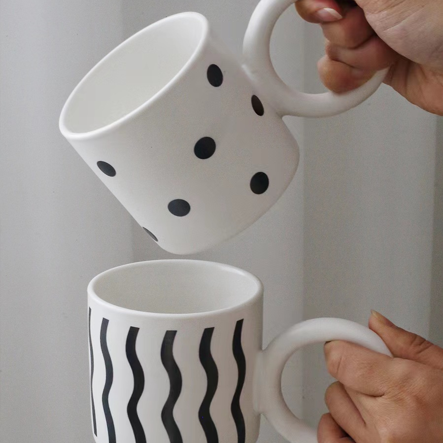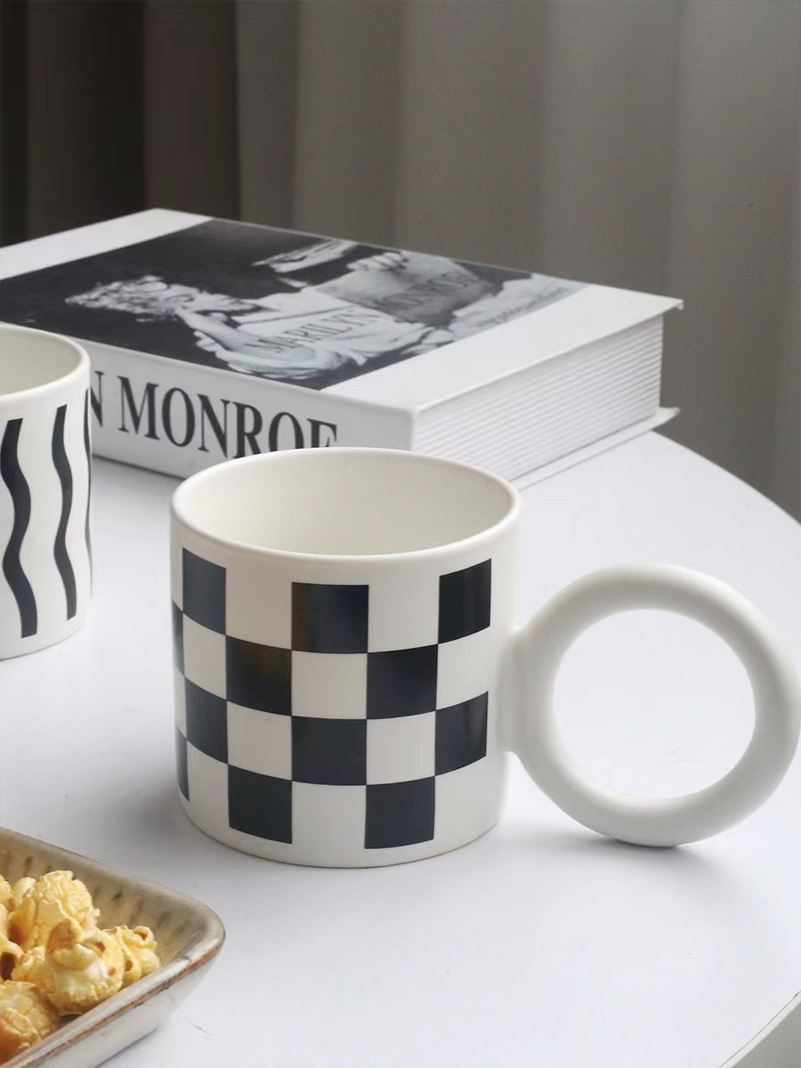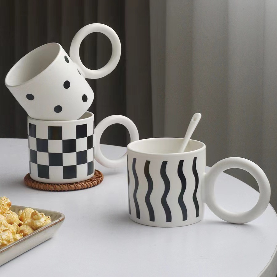 大圓圈手把黑白陶瓷馬克杯